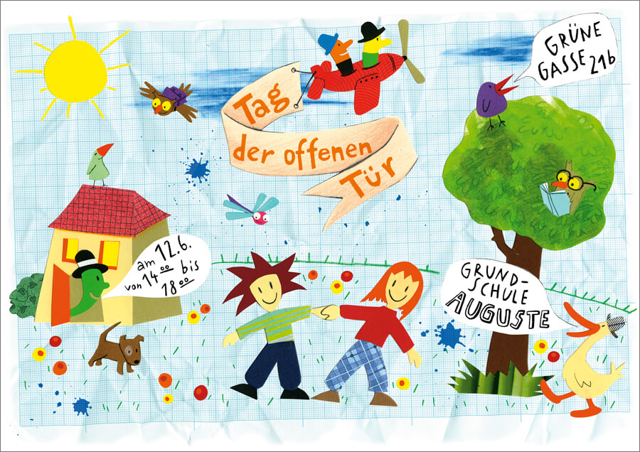 Faltblatt und Plakat, Illustrationen und Gestaltung, Grundschule Auguste Leipzig 2009
